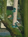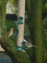 The blackcap now seems to be a regular visitor to the sunflower seed feeder. Despite its small size, it terrorises the other birds - quite a little bully. |