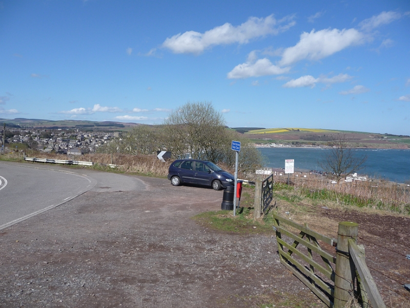 Our car, with Stonehaven in the background and the footpath up to the war memorial on the right
